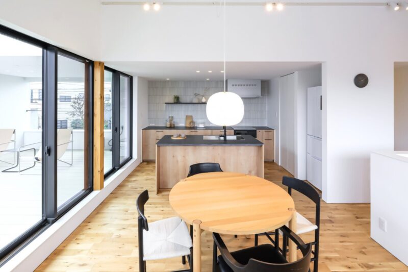光と視線を巧みに操ることで、開放感とプライバシーを両立した空間を実現しました。