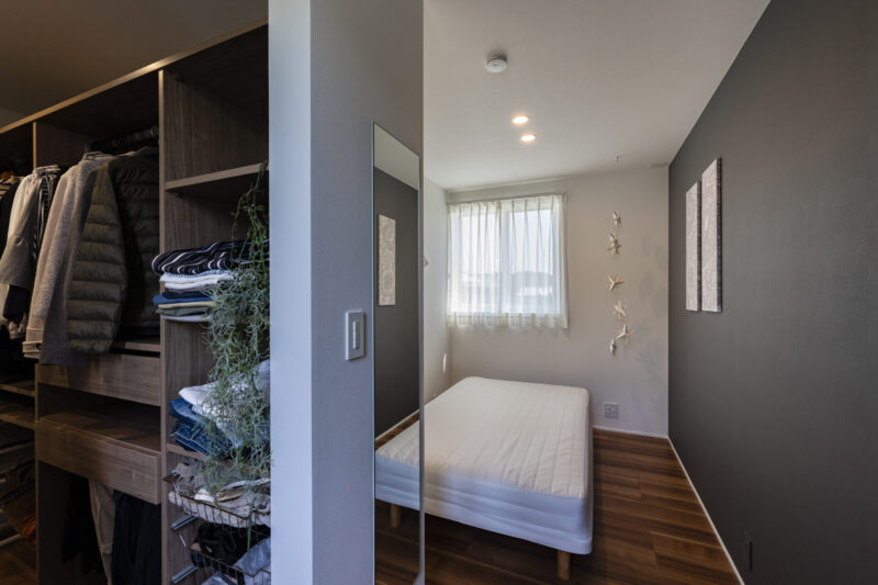 二階には子世帯の寝室や子ども室のほか、花火を望むフリースペースや小さな隠し部屋を配置。
