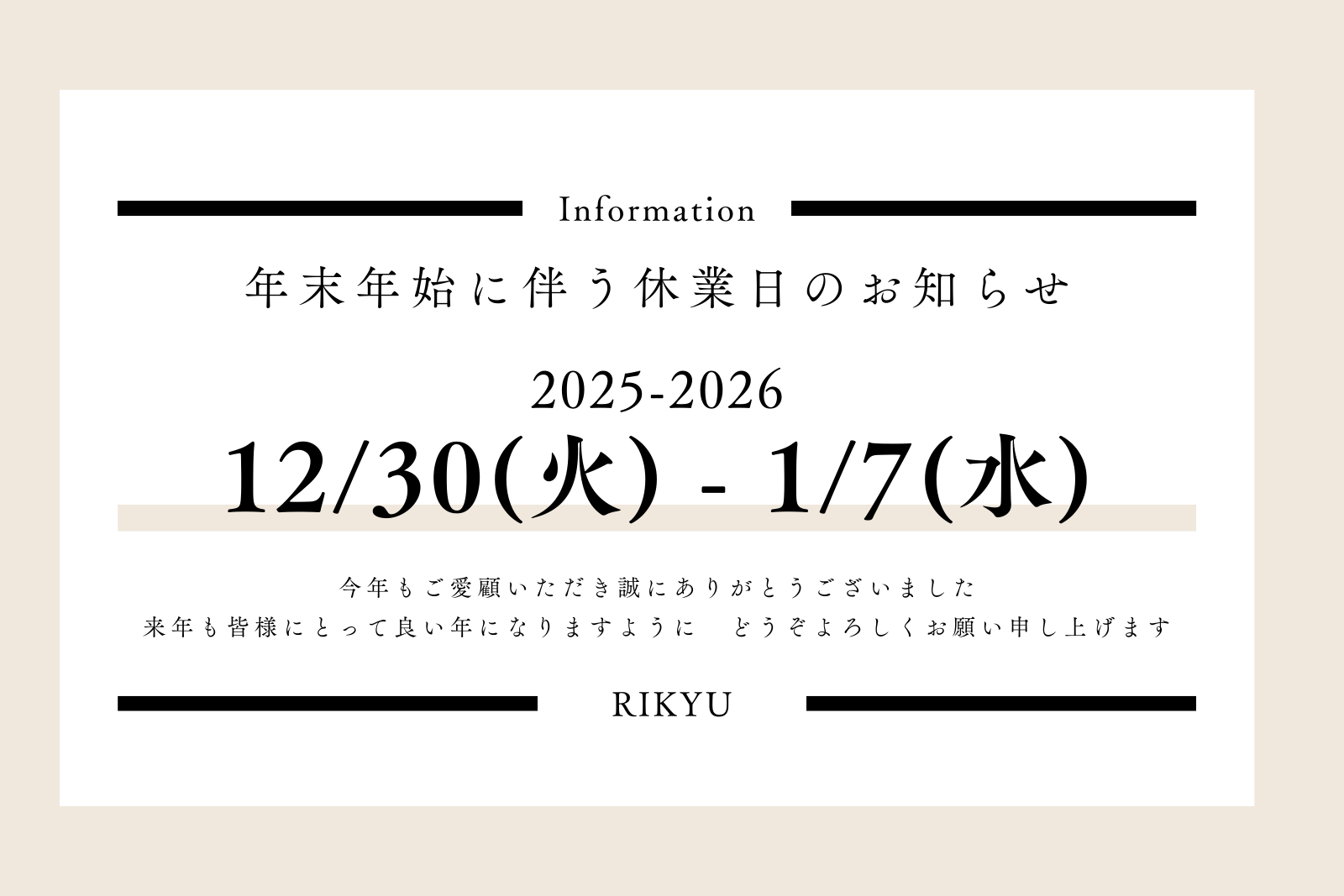 ■年末年始休業日 2025年12月30日~2026年1月7日