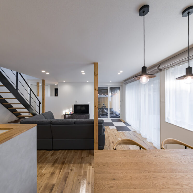 毎日、バイクを見れて最高です。リビングが広く、子供が楽しく遊べています。