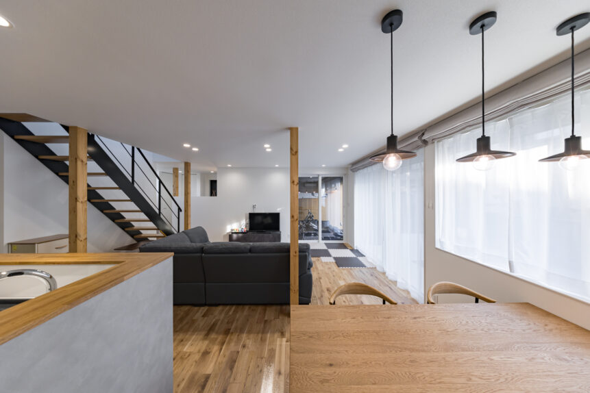 毎日、バイクを見れて最高です。リビングが広く、子供が楽しく遊べています。