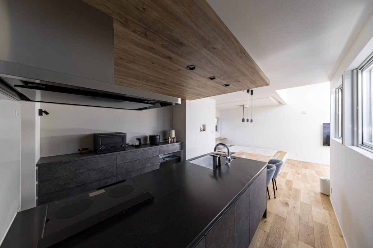 家族の笑顔が広がる、開放的なL字の司令塔 キッチンからはダイニングや畳コーナーまで視線が通り、どこにいても家族の気配を感じられます。 東側の連窓から外の移ろいを感じつつ、パントリーへのスムーズな動線で家事効率も高めました。